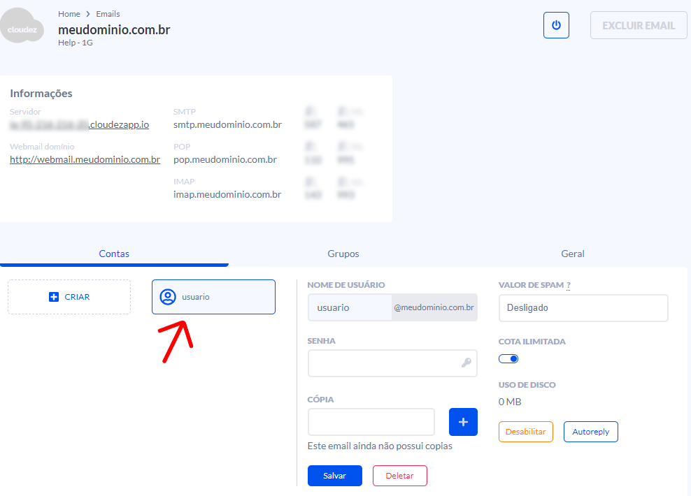 Para habilitar a conta de e-mail, basta seguir os mesmos passos, mas na última etapa escreva HABILITAR na caixa de diálogo.