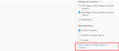 Na aba que abriu após você realizar o passo anterior, clique em Exibir todas as configurações do Outlook.