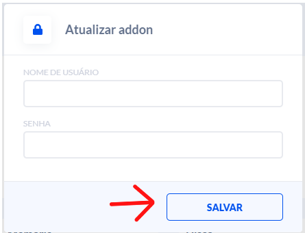 Na caixa de diálogo que aparecerá, insira o nome de usuário e a senha que para o usuário daquele addon. Clique em salvar.