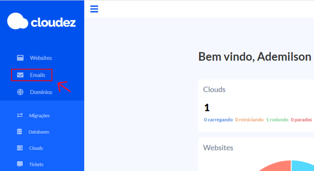 Na aba lateral no canto esquerdo, vá até o menu e clique na opção “E-mails”.