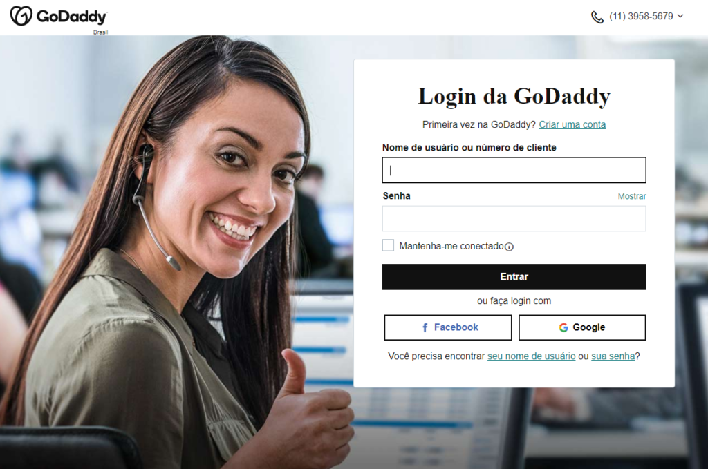 Faça login na sua conta na GoDaddy.