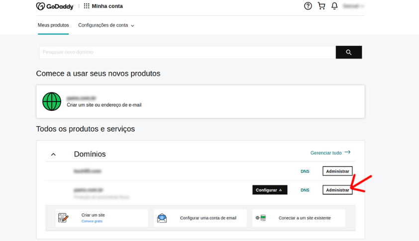 Após fazer o login, clique sobre o domínio que deseja alterar o DNS.