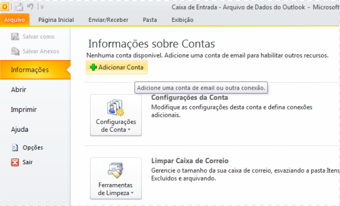 Como configurar conta de e-mail no Outlook 2010