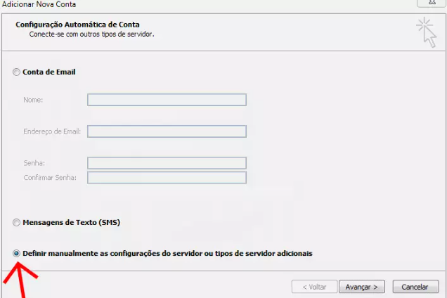 Na tela seguinte, clique em “Definir manualmente as configurações do servidor ou tipos de servidor adicionais” e depois em “Avançar”.