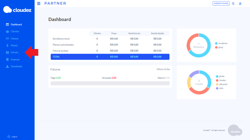 Lembre-se: Atualmente, para realizar o saque do valor disponível, é preciso abrir um ticket para o Setor Financeiro. É muito importante que você saiba: só se pode fazer saque no valor total. Para tanto, os dados financeiros da empresa devem estar cadastrados corretamente. Caso não saiba como verificar, veja esse passo a passo: https://help.cloudez.io/como-adicionar-informacoes-financeiras-da-empresa/ .