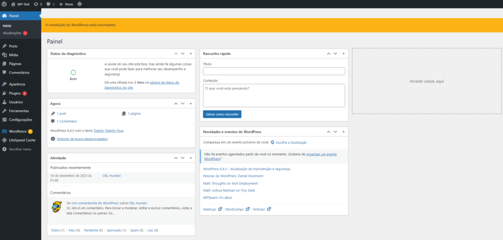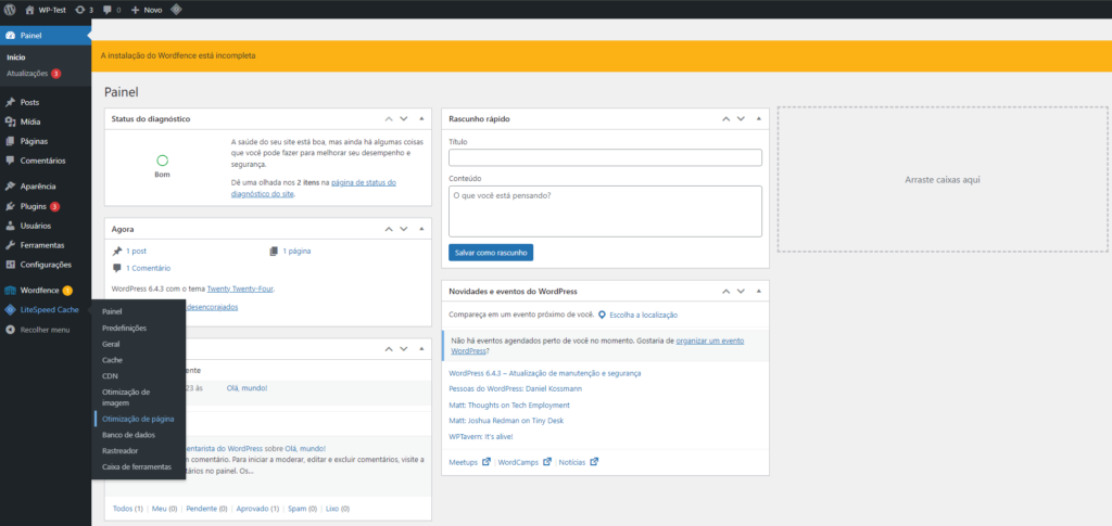 - No menu lateral, clique em “LiteSpeed Cache” para acessar as configurações do plugin.