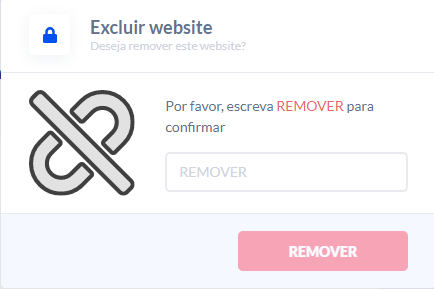 Para confirmar a exclusão do seu website, escreva a palavra REMOVER no campo indicado e depois clique no botão Remover.