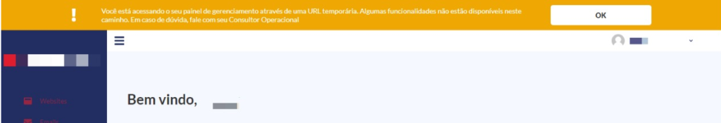Você pode verificar que está em um link temporário pelo seu próprio painel ao visualizar a URL de acesso. Também pode verificar que ao acessar o painel, aparecerá uma mensagem de notificação laranja no topo superior da tela mencionando que o seu painel não está em um link URL definitivo, conforme imagem abaixo.