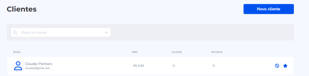 Clique sobre a cloud desejada para ser redirecionado ao painel de gerenciamento correspondente.