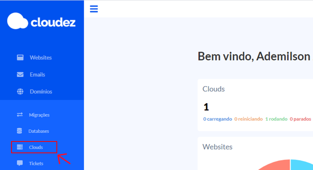 Na aba lateral no canto esquerdo, vá até o menu e clique na opção “Clouds”.