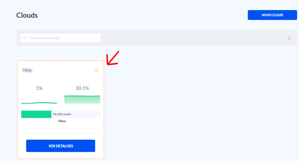 Na sua listagem de clouds, localize e clique sobre aquele que você deseja deletar.