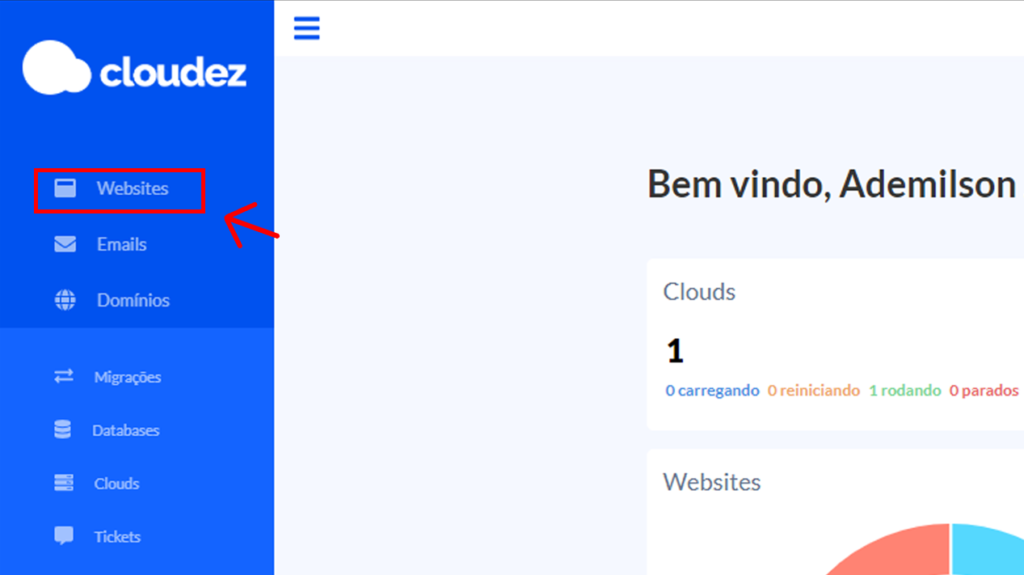Na aba lateral no canto esquerdo, vá até o menu e clique na opção “Websites”.